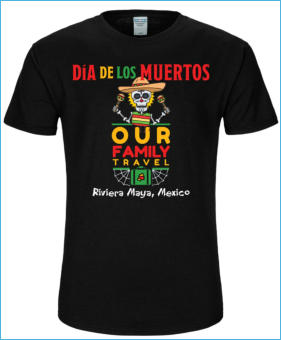 We are super excited to be taking a group to Mexico for Dia de los Muertos in 2024. To commemorate the event, Our Family Travel has designed a special t-shirt for our party.Every one who books a suite will receive one of these “fiesta” shirts ~ the first 15 suites will receive a shirt for everyone in their party!